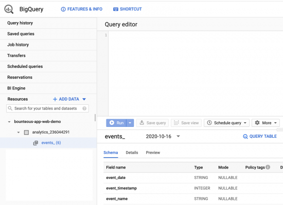 The way you set up BigQuery will depend on which Analytics platform you’re using. In the section below, we outline integration to BigQuery for:
